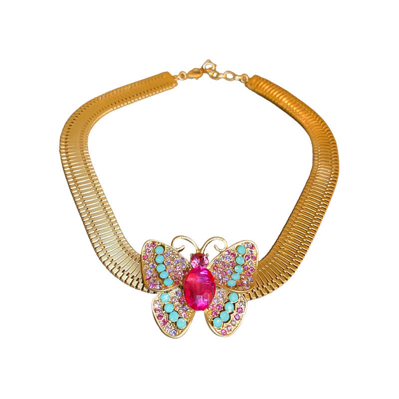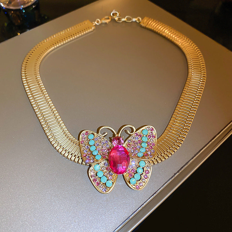 Exaggerated colorful diamond butterfly necklace metal clavicle chain necklace