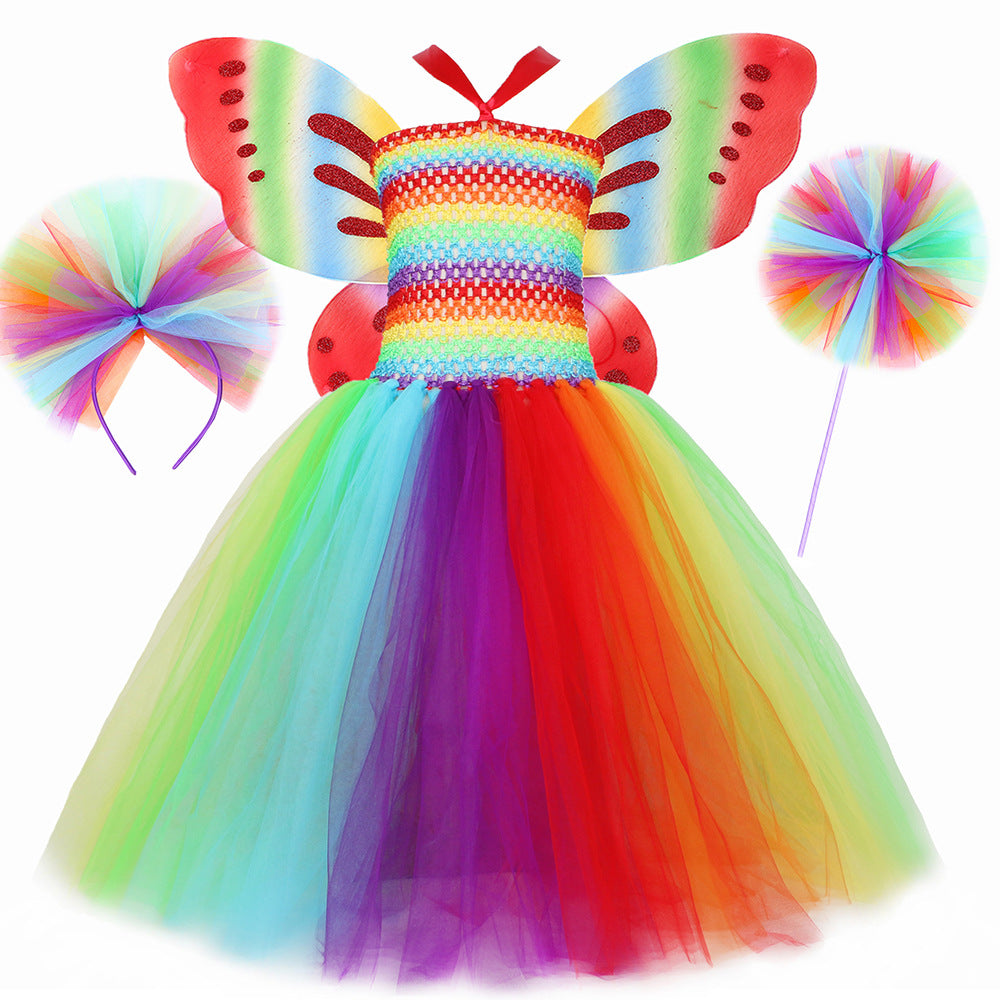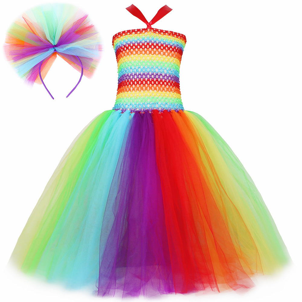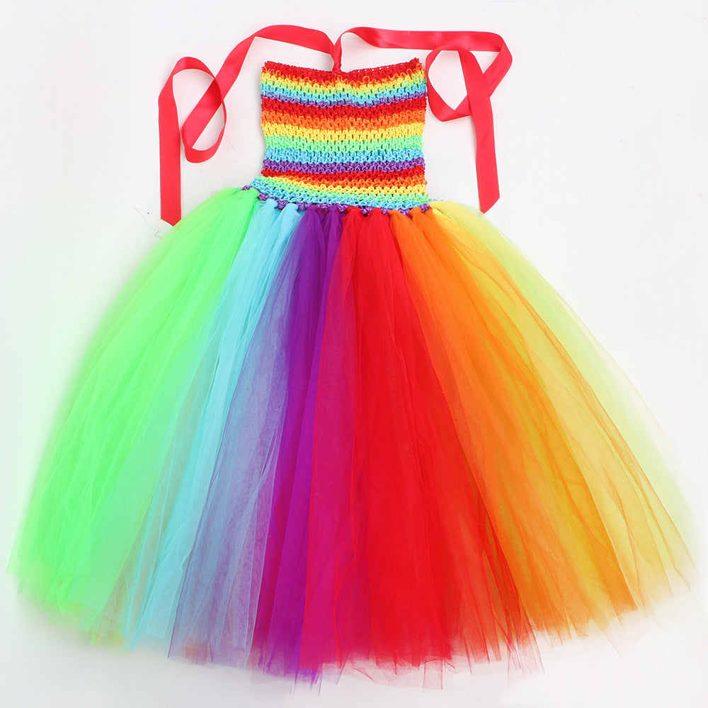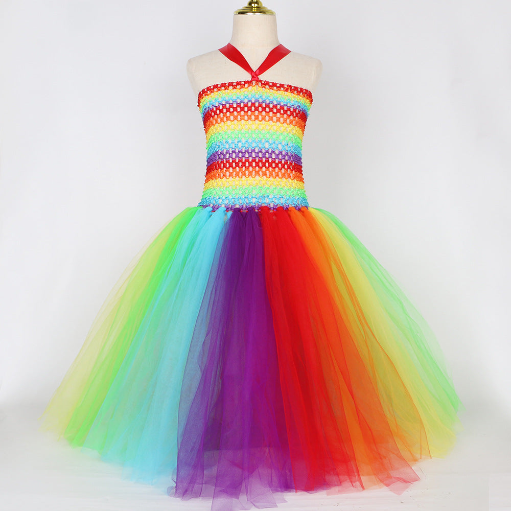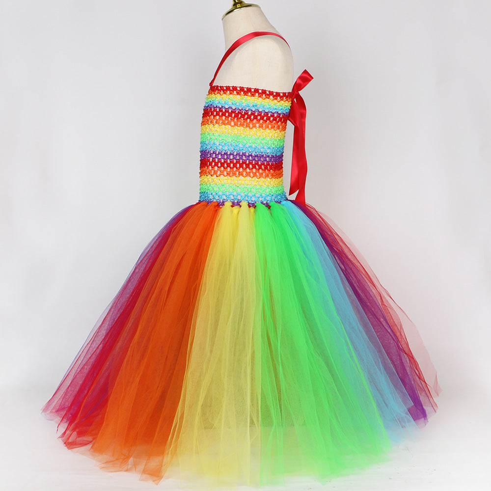 Holiday Party Rainbow Little Fairy Princess Dress Children's Mesh Dress