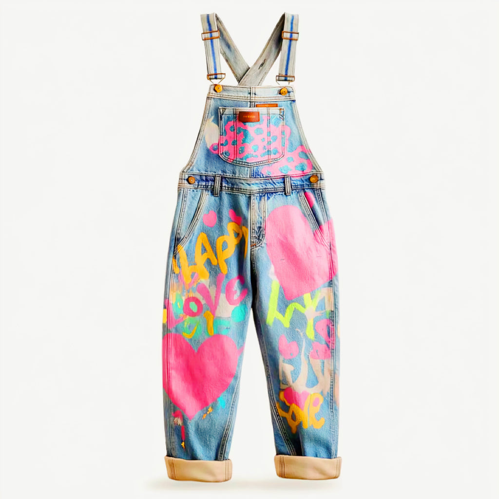 Lucky Sale-Children's light blue graffiti fan heart overalls