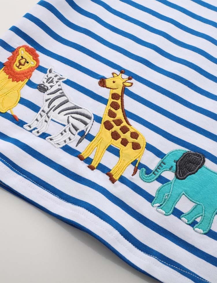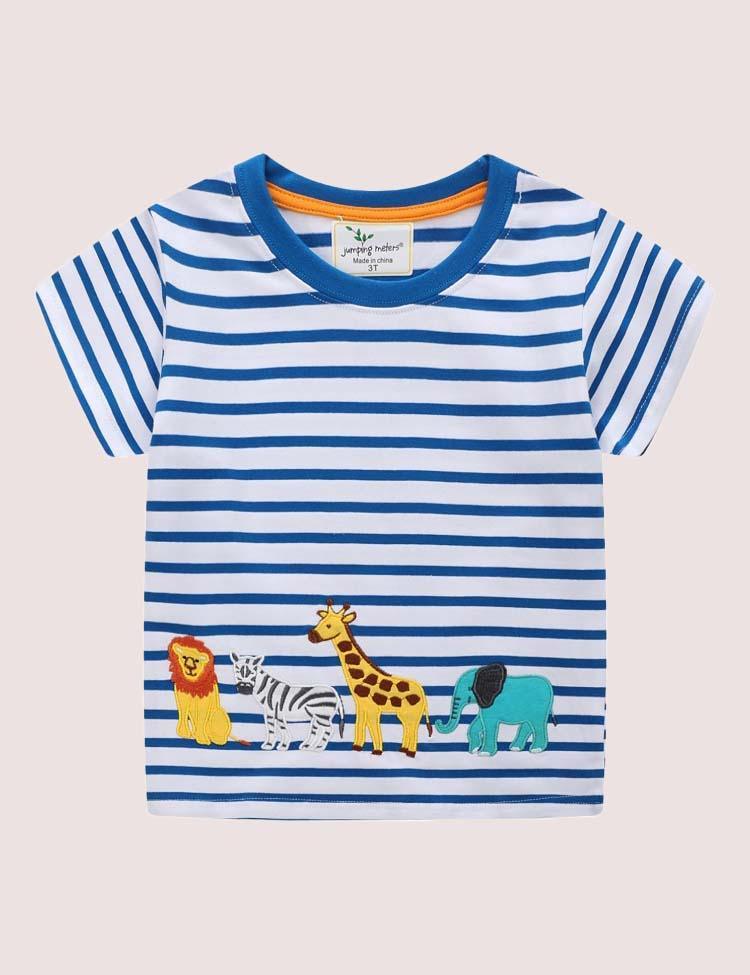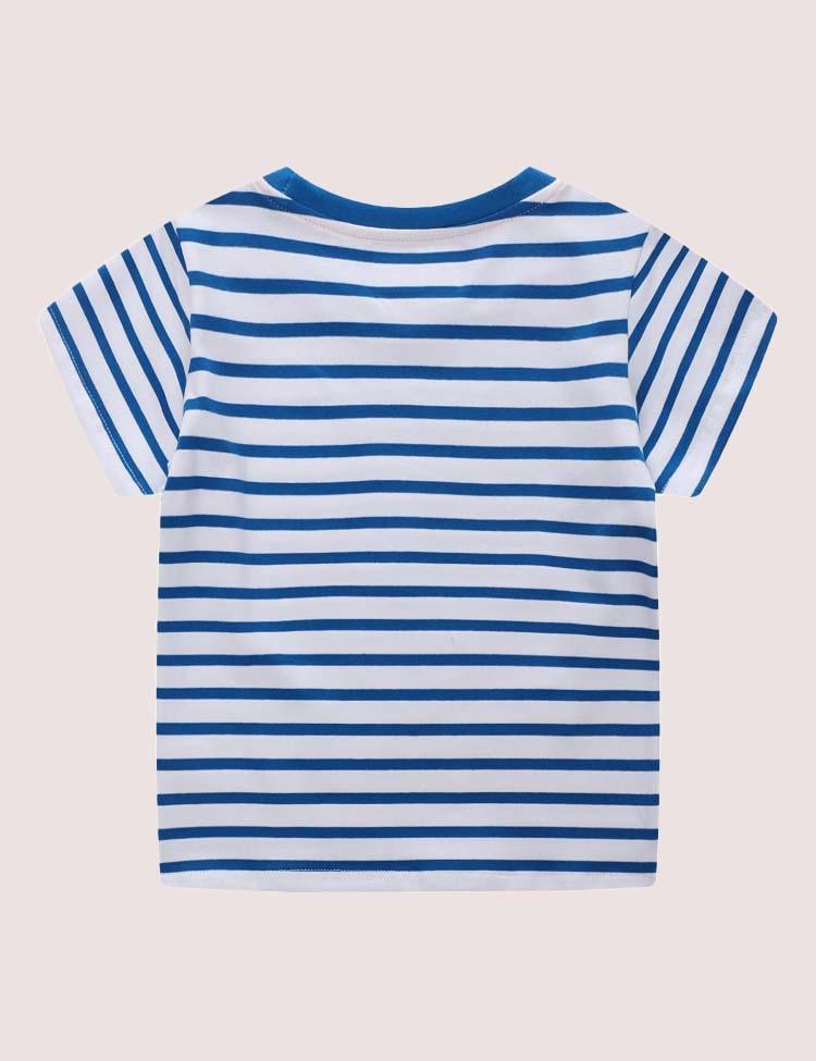 Boy Animal Embroidered Stripe Short Sleeves Tee